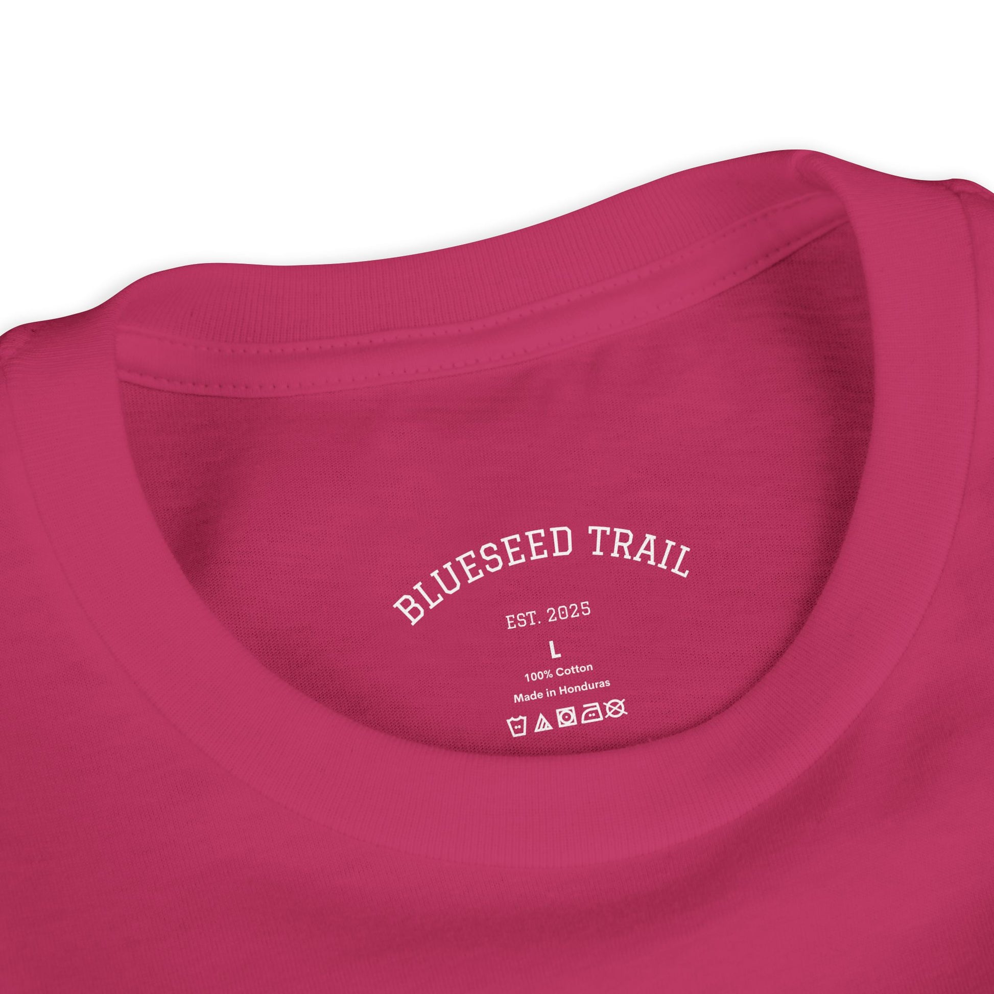 A soft, lightweight youth tee that feels like a favorite from the first wear. The vintage-style nature graphic brings a quiet, outdoorsy charm—like a small trail snapshot printed across the chest. The printed neck label and tear-away tag keep the back of the neck irritation-free, so movement and play stay effortless.